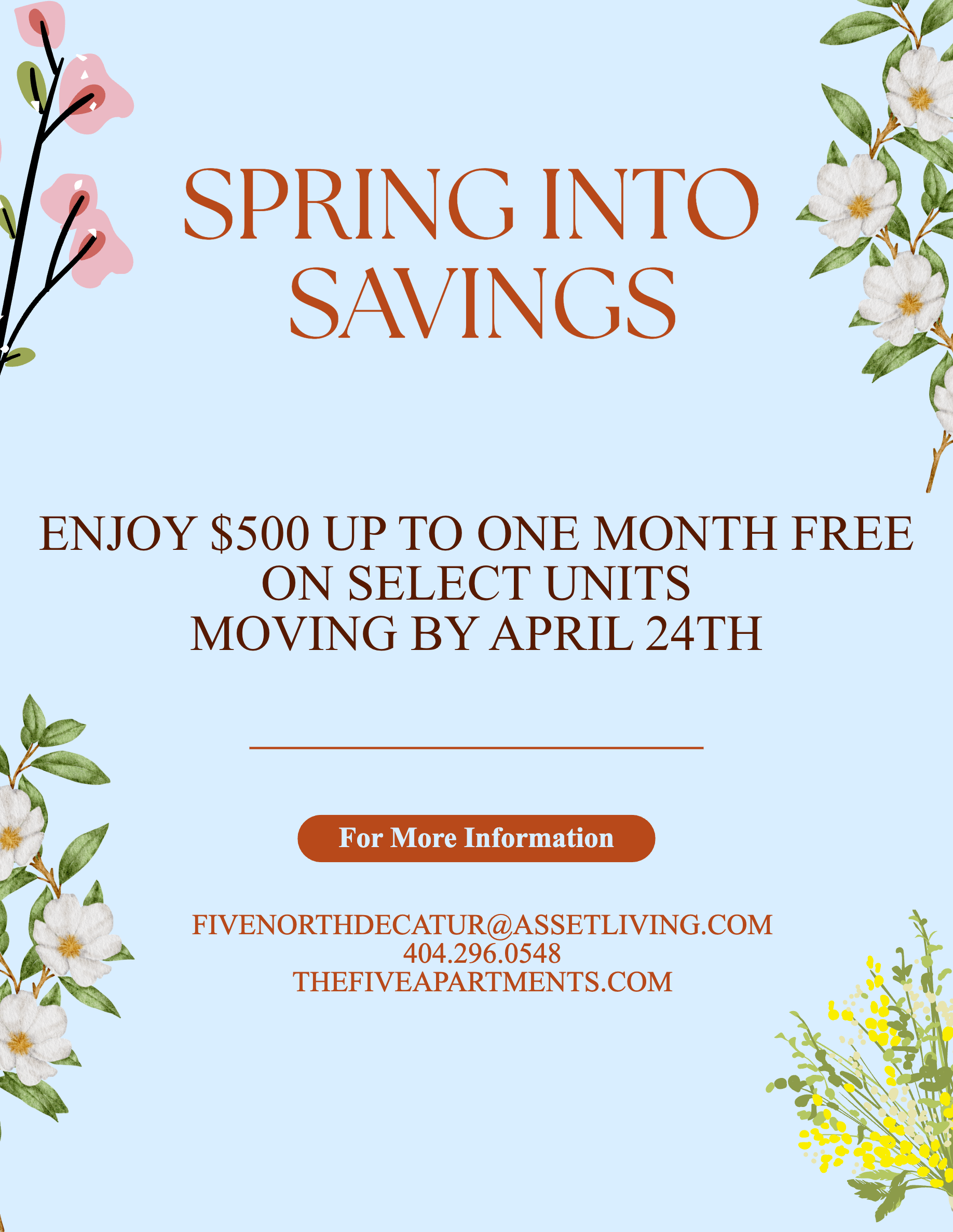 The Five at North Decatur offers one-, two-, and three-bedroom spacious floor plans with modern amenities like granite countertops, stainless steel appliances, and wood-inspired plank flooring.